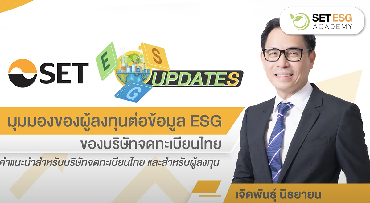 เรียนรู้เกี่ยวกับ “มุมมองของผู้ลงทุนต่อข้อมูล ESG ของบริษัทจดทะเบียนไทย” ผ่านมุมมองของ คุณเจิดพันธุ์ นิธยายน กรรมการผู้จัดการ สายการลงทุน บลจ.ยูโอบี (ประเทศไทย) จำกัด : คำแนะนำสำหรับบริษัทจดทะเบียนไทยและสำหรับผู้ลงทุน Suggestions and/or Recommendations for Thai Listed Companies and Investors